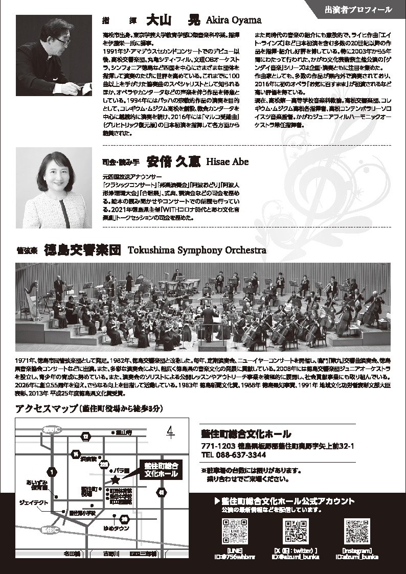 【管弦楽】徳島交響楽団、【指揮】大山晃、【司会・読み手】安倍久恵